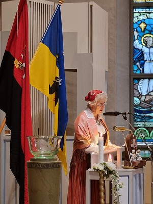 Satakuntalaista kirkkopyhää vietettiin sunnuntaina 21.8.2022 Noormarkun kirkossa. Nousee Satakunnan kansa ry:n ja Karjalan liiton Satakunnan piirin edustajat laskivat kukkavihkot sankarihaudoille ja Karjalaan jääneiden vainajien muistomerkille. Jumalanpalvelusmusiikista vastasi Länsirannikon pelimannit johtajanaan Toivo Viikilä. Kirkkokahvit ja tutustuminen Hiitolan kirkon aarteisiin seurasivat jumalanpalveluksen jälkeen. Tilaisuus järjestettiin kansallispukujen ja -pukujen tuuletus -teemalla. Kuvat: Lauri Hirvola Tilaisuuden ohjelma: Kello 9.30 Kukkavihkojen lasku Sankarihaudoille ja Karjalaan jääneiden vainajien muistomerkille Kello 10.00 Jumalanpalvelus Noormarkun kirkossa Musiikki: Länsirannikon pelimannit, johtaa Toivo Viikilä Laulut: Kansanlaulukirkko Pappina: Minna Järvinen Kanttori: Marina Hämäläinen Tekstinlukijat: Karjalan Liiton Satakunnan piiri: Brita-Helena Railola Nousee Satakunnan kansa ry, Helvi Walli Jumalanpalveluksen jälkeen kirkkokahvit. Tervehdykset: Karjalan Liiton Satakunnan piiri ry:n puolesta Brita-Helena Railola ja Nousee Satakunnan kansa ry:n puolesta Helvi Walli Noormarkun kirkko ja alttarifresko: Noormarkun kirkossa sijaitsevien Hiitolan kirkon aarteista kertoi Noormarkun Karjala-Seuran puheenjohtaja Jouko Hämäläinen. Tilaisuus päätettiin yhteiseen Suvivirteen.